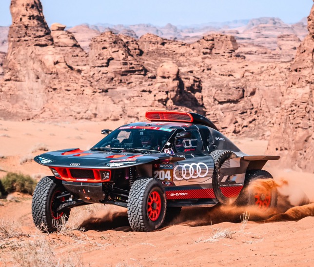 Они приводятся в движение двумя электрическими мотор-генераторами (MGU), один из которых передаёт крутящий момент на переднюю ось, второй – на заднюю. При этом машина также оснащена проверенным 2-литровым двигателем внутреннего сгорания, который в своё время стоял на спорткарах Audi в кузовной серии DTM – он крутит третий мотор-генератор, а тот в свою очередь вырабатывает электроэнергию для подзарядки батарей и питания двух основных MGU. По техническому регламенту «Дакара» мощность двигателя не должна превышать 392 л.с., но если бы не это ограничение, то сложная силовая установка Audi могла бы развивать до 680 л.с.