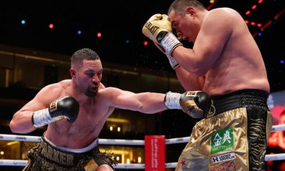 Getty Images/Global Images Ukraine. Джозеф Паркер и Чжан Чжилей Дэвид Хиггинс, промоутер временного чемпиона WBO в супертяжелом весе Джозефа Паркера (35-3,...