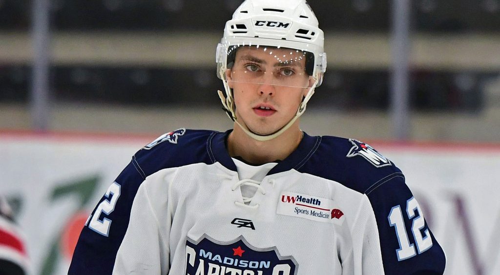 В 2014-2017 годахЕвгений Фадеевиграл в составе«Мэдисон Кэпиталз», выступающего в лиге USHL – первой юниорской хоккейной лиге США. Там в 89 матчах нападающий набрал 39 (11+28) очков.