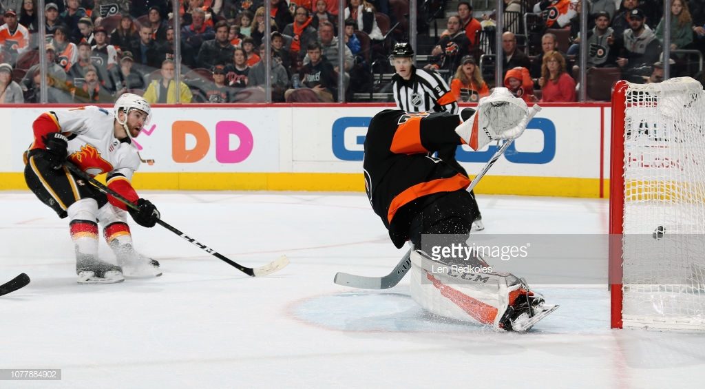 Гол Ти-Джея Броди через две минуты после начала овертайма позволил «Калгари» (26-13-4) укрепиться на первой позиции Тихоокеанского дивизиона. «Флэймз» дважды уступали в счете, но за 4:17 до конца третьего периода Мэттью Ткачак сравнял счет, а в овертайме сделал передачу на Броди. В 43 играх на счету Ткачука 49 (19+30) очков, что уже стало повторением его личного рекорда, установленного в 68 матчах прошлого сезона. «Филадельфия» (15-20-6) проиграла в шестой раз подряд, а голами в ее составе отметились Трэвис Занхайм и Трэвис Конекни. Иван Проворов сделал второстепенную передачу на гол в большинстве, набрав первое очко за пять матчей.