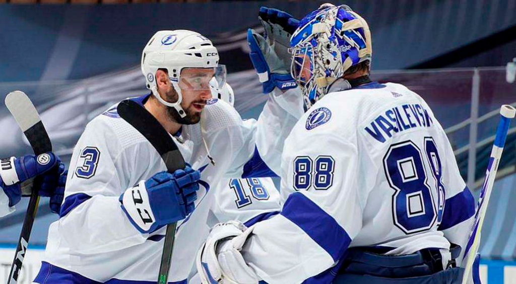 «Молнии» вышли вперед на 16-й минуте первого периода, шайба на счетуАлекса Киллорна. В начале второй третиРайли Нэшсчет сравнял, но на второй перерыв «Тампа» уходила с комфортным преимуществом в две шайбы – отличилисьБрейден ПойнтиВиктор Хедман. Шведский защитник, к слову, играл с не долеченной травмой.