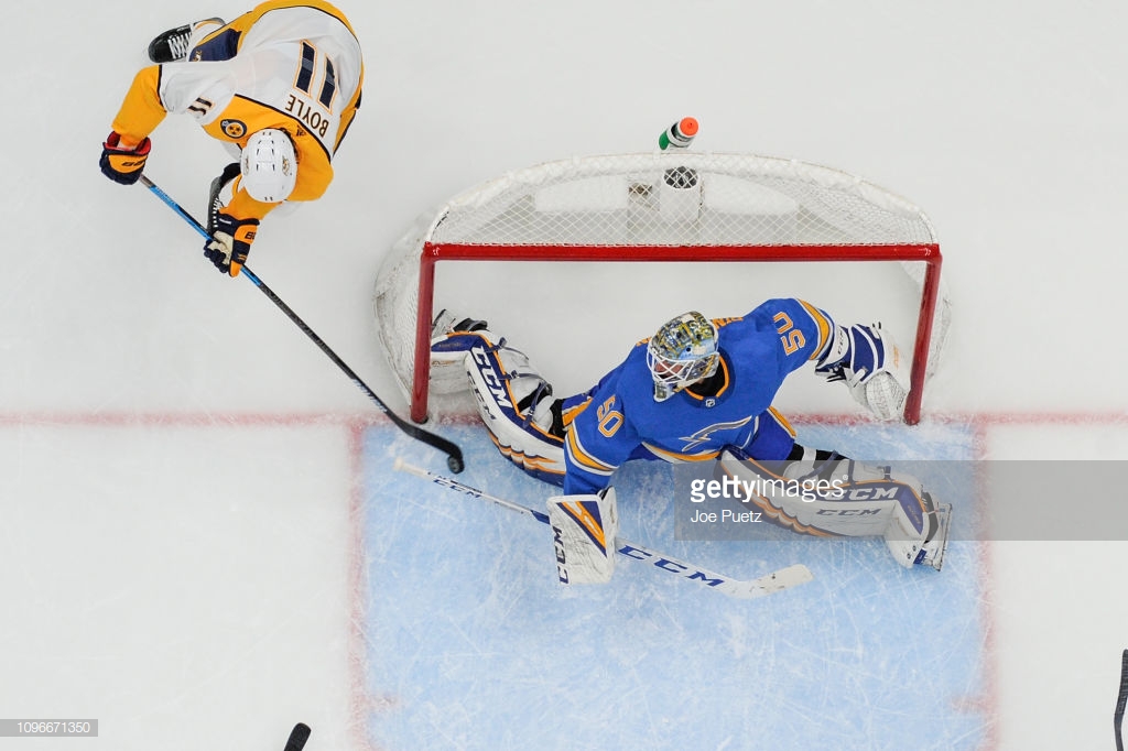 Джордан Биннингтон против Брайана Бойла «Сент-Луис» (26-22-5) впервые в сезоне выиграл в пятый раз подряд благодаря голам Винса Данна, Владимира Тарасенко...