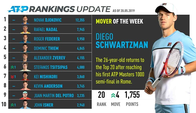 Актуальные результаты в мужской теннисной классификации.