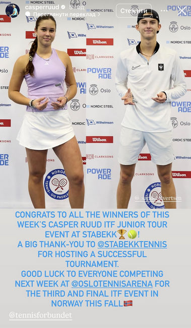 Поскольку эти соревнования являются частью серии турниров Casper Ruud ITF Junior Tour, экс-вторая ракетка мира Каспер Рууд поздравил украинскую теннисистку в своем Instagram с завоеванием титула.